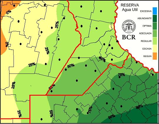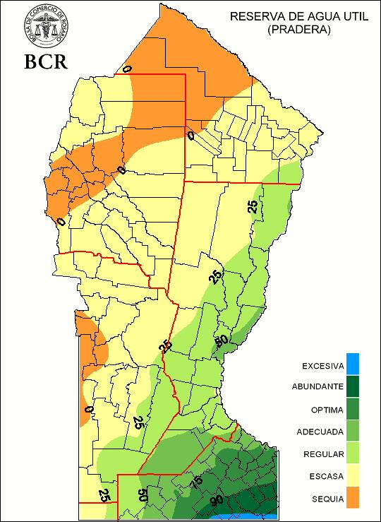 Para alcanzar un nivel óptimo de humedad del suelo en los próximos 15 días, se necesitarían precipitaciones con acumulados entre 80 y 100 mm en la provincia de Córdoba y alrededor de 20 a 30 mm en el centro de Santa Fe. En el norte de Buenos Aires las condiciones de humedad edáfica son óptimas.