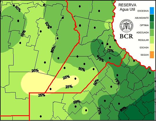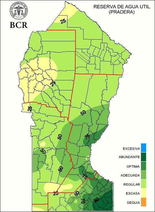 Para los próximos 15 días no se necesitaría lluvias en la mayor parte de GEA para que se logren condiciones óptimas de humedad. La única zona que podría necesitar alrededor de 20 mm para alcanzar buenas condiciones de reserva hídrica se remite al extremo sudeste de Córdoba.