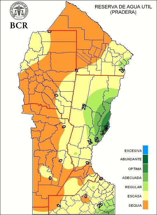 A pesar de las buenas lluvias registradas, se sigue observando un progresivo deterioro de las condiciones de humedad en toda la región GEA. Sólo la provincia de Córdoba ha recuperado algo de humedad pero todavía mantiene niveles de sequía en el perfil hídrico. El área con reservas regulares ha ganado algo de terreno pero prevalecen las reservas escasas y las condiciones de sequía en la mayor parte de la región. En los próximos quince días se requieren lluvias muy abundantes para la época del año en Córdoba, con promedios entre 80 y 100 mm para lograr condiciones óptimas en el perfil del suelo. En el resto de GEA los acumulados necesarios para alcanzar buenas reservas de humedad edáfica se mantienen como las últimas semanas, entre 60 y 80 mm.