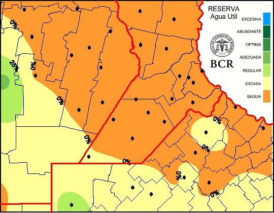 Los mapas de condición hídrica no presentan cambios significativos respecto de la semana pasada. Si bien las lluvias fueron importantes sobre Buenos Aires siguen sin afianzarse mejoras sustanciales por lo que la mayor parte de la región continúa mostrando condiciones de sequía y sólo la zona sur de GEA muestran características entre escasas y regulares.