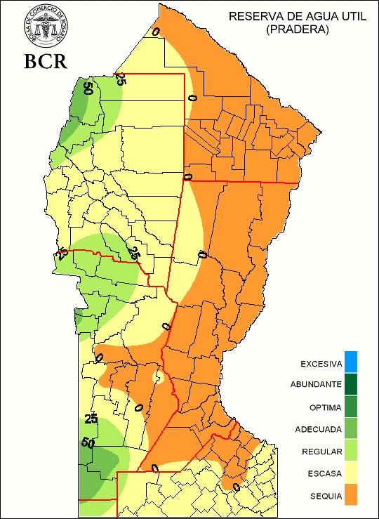 Por el momento las condiciones predominantes de sequía se mantienen en el resto de Santa Fe, Entre Ríos y gran parte de la Mesopotamia donde, las exiguas lluvias recibidas, no han logrado provocar una mejora significativa.
