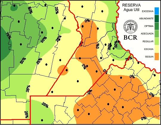 Las reservas de agua útil muestran zonas donde las condiciones de sequía experimentaron retrocesos bastante significativos, como no se veía hace meses aunque, debido al déficit acumulado durante tres años, todavía es muy pronto para hablar de recuperaciones consistentes.