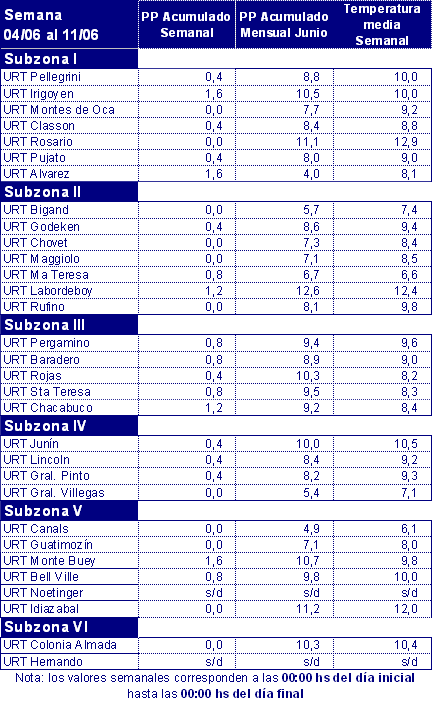 La semana comprendida entre el jueves 11 y el miércoles 17 de junio, presentará condiciones muy similares a las que se vienen registrando desde mediados del otoño. La falta de precipitaciones y las bajas temperaturas serán, una vez más, las condiciones prevalecientes en la región GEA. Durante las primeras horas de hoy y mañana se espera el registro de heladas en forma aislada, con temperaturas entre 1 y 3° C por debajo de cero, mientras que a partir del sábado se espera un ascenso de los registros térmicos debido a la rotación del viento al sector Norte con un incremento de su intensidad, que no solo favorecerá el ascenso de la temperatura sino que permitirá además, el ingreso de humedad en capas bajas, que puede favorecer el desarrollo de algunas precipitaciones débiles y en forma aislada durante el lunes o martes, pero estas lluvias no serán significativas, los acumulados esperados no superan los 10mm, y se concentrarán sobre el Este de la región GEA.