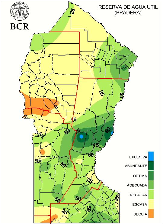 Con las actuales condiciones, en los próximos quince días, se requieren entre 40 y 80 mm en forma generalizada, con lugares puntuales donde los acumulados requeridos oscilan entre los 80 y 120 mm, para alcanzar condiciones de humedad óptimas.