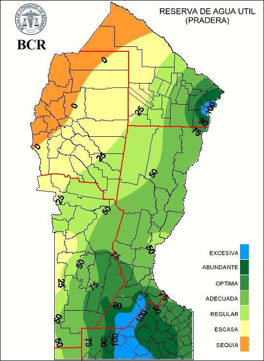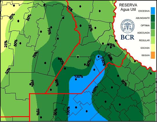 Con este panorama las reservas se mantienen similares a la semana pasada, principalmente en el centro y sur de la zona GEA donde son abundantes o excesivas. En el resto del área la humedad de suelo es óptima o adecuada, disminuyendo hacia el noroeste donde va de regular a escasa.