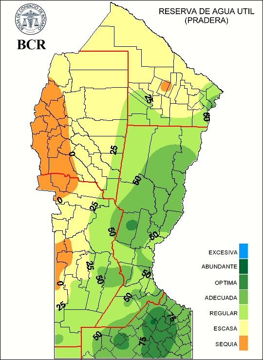 Con este panorama, las reservas se mantuvieron respecto de la semana pasada, principalmente en el sudeste de la zona GEA donde los niveles ahora son de adecuados a óptimos. Las reservas disminuyen hacia el oeste pasando de regulares a escasas o incluso sequía, principalmente en el sector noroeste. Con las actuales condiciones, en los próximos quince días, se requieren alrededor de 60 a 80 mm en el centro/oeste de la zona GEA, mientras que en el noroeste el faltante de agua alcanza los 100 a 140 mm y en el sector sudeste las precipitaciones necesarias para llegar a condiciones de humedad de suelo óptimas oscilan entre 20 y 40mm.
