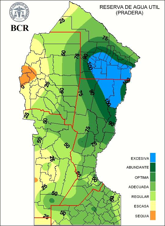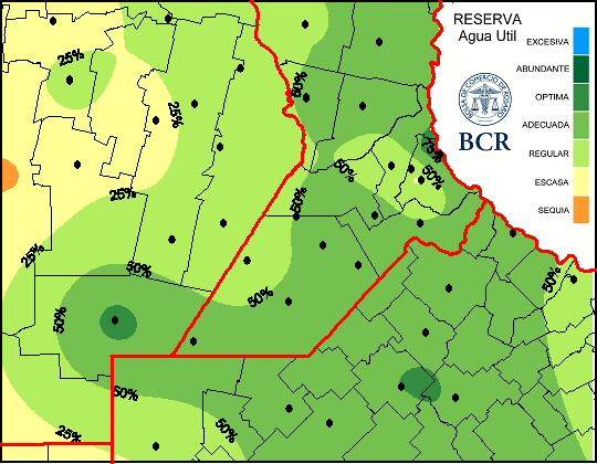 Con este panorama, los sectores con reservas hídricas escasas se redujeron, mientras que la superficie con agua útil adecuada aumentó en comparación con la semana anterior. Sin embargo, los niveles de humedad disminuyen hacia el noroeste, donde persisten condiciones de escasez.