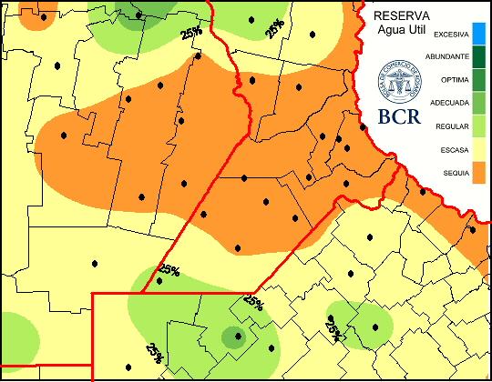 Con este panorama las reservas escasas cubren gran parte de la zona GEA. En el sector sur persisten núcleos en condiciones regulares pero, debido a las precipitaciones recibidas, en el norte aumentaron las reservas a regulares o adecuadas, mientras que la sequía se mantiene principalmente en el centro del área GEA.