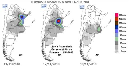 Estos sectores, en apenas 48 horas recibieron montos de precipitaciones que superaron el promedio mensual. El centro sur de Santa Fe es la zona más afectada por los excesos de agua. Se registraron acumulados superiores a los 300 mm. En Irigoyen se midieron 328,8 mm. También se destacan las localidades de Pellegrini, con 252,6 mm o Clason, con 184,2 mm. Sólo una pequeña porción de la zona núcleo no superó los 100 mm semanales. El resto se mantuvo entre 100 y 200 mm.