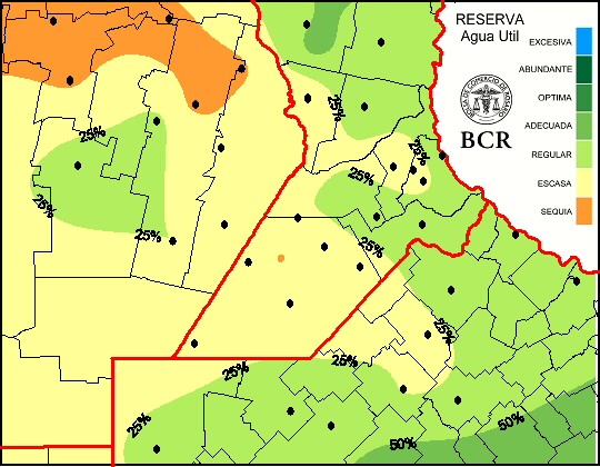 Y si bien hubo una mejora notable con las lluvias de los últimos 45 días, el 40% de los suelos de la región está con niveles de humedad (en el primer metro) de escasez y un 10% con sequía aún.