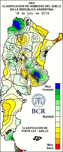 'Los forzantes de gran escala son favorables, la humedad va asistir al trigo en su ciclo', comenta José Luis Aiello, Dr. en Cs. Atmosféricas. Las mayores disponibilidades de reservas de agua en el suelo se encuentran en las zonas ubicadas en el centro y sur, es una distribución típica estacional, explica.