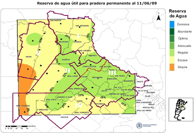 Las condiciones hídricas que se observan van desde regulares a sequía. La semana se caracterizó por la ausencia de precipitaciones significativas y por temperaturas mínimas bajas, con la consecuente formación de heladas en varias localidades de la región.