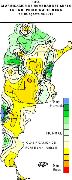 Porcentaje de agua útil disponible para el cultivo de trigo al 26/08/2010. |