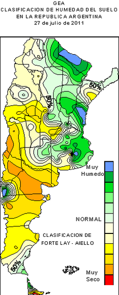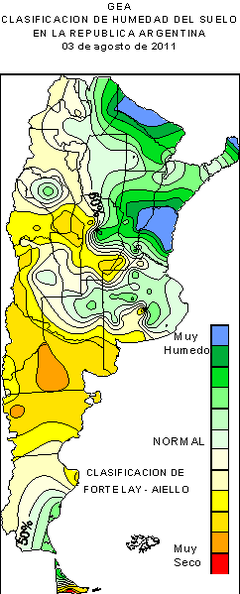 Por otra parte, las precipitaciones fueron heterogéneas en la región GEA, con un gradiente norte-sur muy marcado, de acumulados prácticamente nulos sobre la franja sur, en especial sobre la provincia de Buenos Aires, y valores superiores a los 25 mm sobre el sector norte, fundamentalmente en el noroeste de la provincia de Santa Fe y el noreste de Córdoba. El valor acumulado más importante fue de 28,8mm en la localidad de Pellegrini, provincia de Santa Fe.