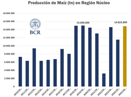 Maíz 2025/26: la región núcleo apunta a un salto productivo del 20% respecto a la campaña pasada - 15 de Enero de 2026