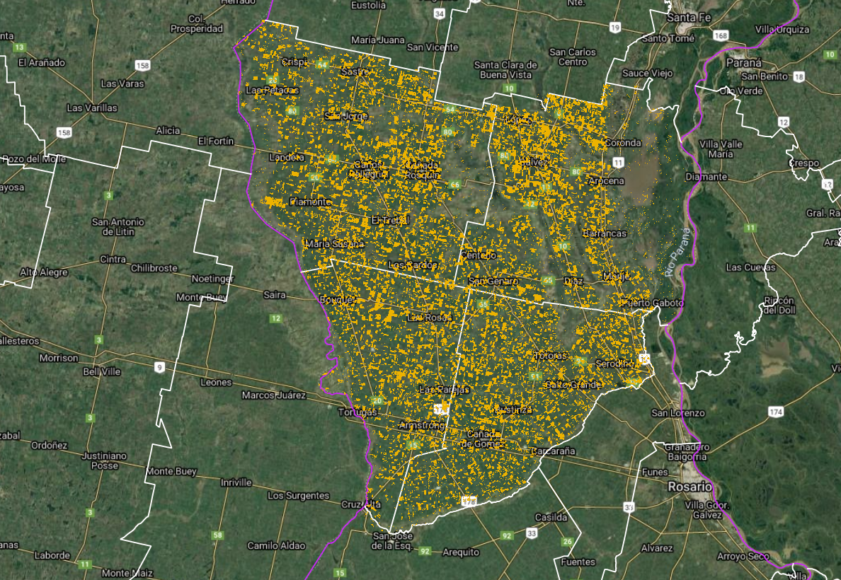 La producción triguera no deja de recibir malas señales. Y esta vez no es por los rindes de las cosechadoras que cae la producción sino por lo que muestran los satélites. El trabajo se limitó a Santa Fe por la pandemia, empezando en esta primera parte por los departamentos del centro sur de Santa Fe: Belgrano, San Martín, San Jerónimo e Iriondo. Se tomaron 500 puntos georreferenciados y tal como se hizo el año pasado —procesamiento con Google Earth Engine y clasificación mediante un script extrayendo imágenes del satélite Sentinel-2— se determinó 251.147 ha cultivadas con trigo en este año. El ciclo pasado los satélites mostraron 330.00 ha con lo que se estimaba, hasta hace una semana, solo una baja de un 6%, es decir 310 mil ha. Pero el ajuste resultó mucho más importante, se sembró casi un 25% menos que el año pasado. ¿Puede haber más ajustes negativos en la región? Sin dudas que el impacto de la falta de agua a la hora de siembra impactó a un mayor nivel de lo que se esperaba en Córdoba y Santa Fe. A nivel región núcleo, el trabajo satelital seguirá por el sur de Santa Fe. Por lo pronto las cifras de trigo se actualizan a 1,56 M de ha sembradas, y una producción que pasa de 4,17 a 4,07 Mt.