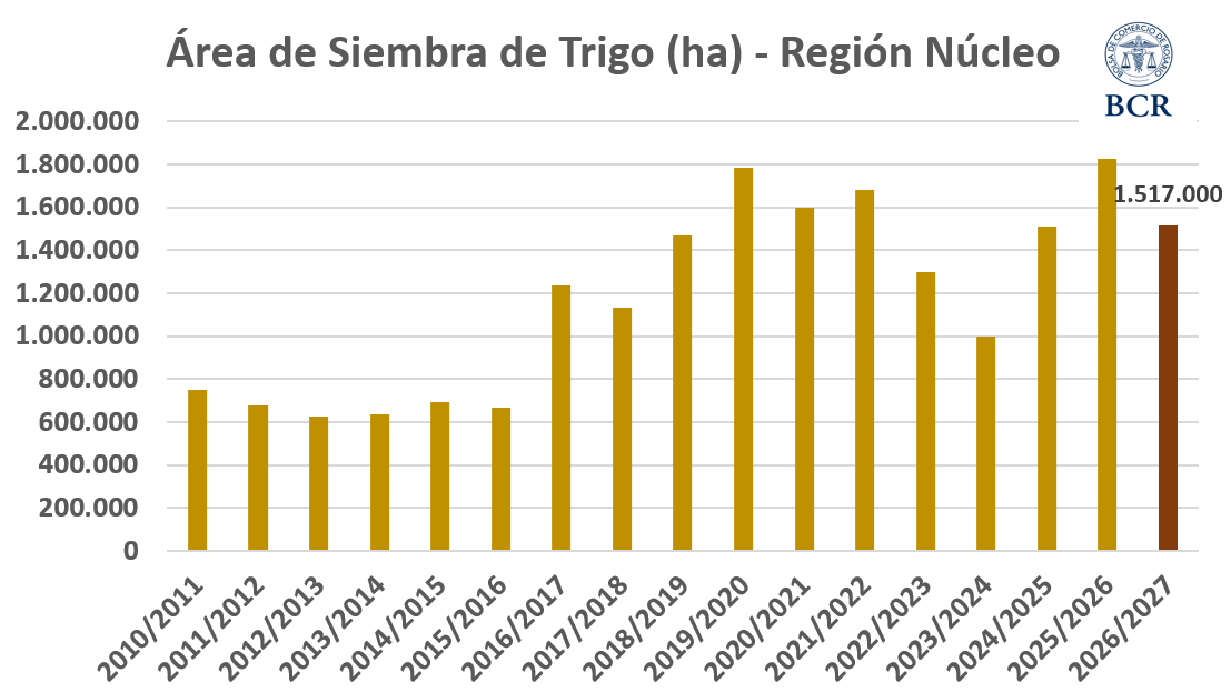 Se estiman 300.000 ha menos de trigo 2026/27 en la región núcleo - 23 de Abril de 2026