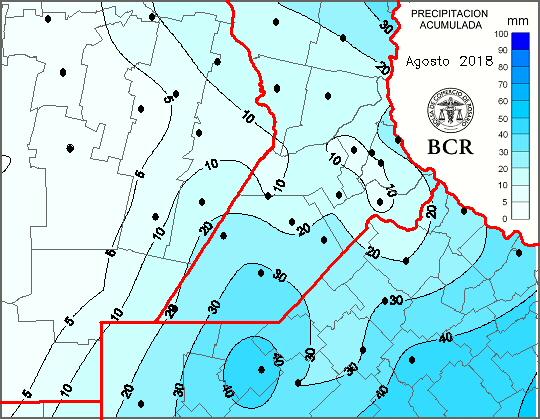 Agosto se despidió con un 60% menos de lluvias que el año pasado. Aparte, la polaridad de lluvias profundizó aún más las diferencias entre el norte de Buenos Aires y Córdoba. Colonia Almada registró tan solo 1,6 mm mensuales contra los 50 mm de General Pinto. Esta diferencia de reservas ya venía de julio. Pero agosto dejó menos agua para todos. En el 2017, el promedio de lluvias de la región fue de 45 mm, en el 2018 solo 18 mm. En Córdoba es donde más se siente la limitante. Allí, la falta está tanto en los primeros 30 centímetros como en profundidad. También es dónde más avanzados están los cultivos, con buena parte ya encañando. Los técnicos coinciden en que si llegan lluvias importante antes de mitad de setiembre, no habría pérdidas importantes. Pero los pronósticos no ayudan, las tormentas que se esperan este fin de semana volverían a cargar sobre Buenos Aires. Y luego se instalaría una masa de aire frío que generaría condiciones estables.