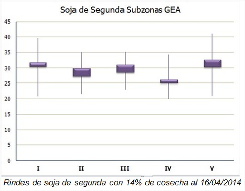 Comenzó la trilla de las segundas siembras de soja y el progreso alcanza al 14%. Se destaca el este cordobés que ya alcanzó el 20% de cosecha. La buena a excelente condición fisiológica del cultivo se luce en resultados sin precedentes: 31,2 qq/ha en promedio, con extremos de 23,5 y 38 qq/ha.