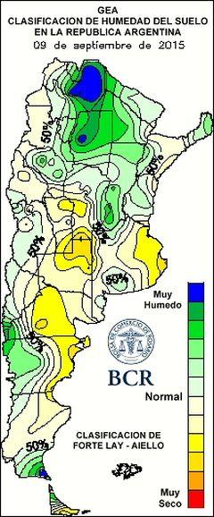 Actualmente la evapotranspiración es muy baja debido a que además de los pocos lotes sembrados con trigo, el mismo recién está culminando su estado de macollaje. El acumulado desde su siembra (mayo) a la actualidad cubre todo el requerimiento hídrico del cereal (450-550 mm) en el norte de Buenos Aires. Ese excedente de agua que los cultivos no llegaron a aprovechar se dirigió a las napas aumentando su nivel. Los lotes de trigo que soportaron el temporal se encuentran en buenas condiciones. Sin embargo, si el suelo está saturado se agota el oxígeno, cesa el crecimiento de las raíces y se detiene la absorción de nutrientes. Ante la imposibilidad de absorber el nitrógeno del suelo, el mismo se extrae de las hojas viejas y se vuelven amarillas. Este es un síntoma que se está observando en muchos lotes de la región. El rinde del cereal podría tener un techo por la reducida dosis de fertilizante aplicado sumado al proceso de desnitrificación ante los anegamientos.