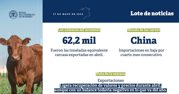 De acuerdo a las proyecciones del USDA, China este año sostendría su nivel de compras creciendo incluso un 2% respecto del año pasado, lo que llevaría potencialmente a superar los 3.8 millones de toneladas anuales. Sin embargo, los datos recientemente publicados por la misma Administración de Aduanas (GACC) de ese país revelan una performance -hasta el momento- muy desacoplada de dicha proyección. Según la GACC, de enero a abril China registró un ingreso de poco más de 890 mil toneladas de carne vacuna que, comparado con lo importado en igual período del año anterior representa una caída del 11%.