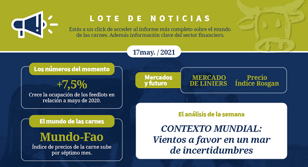 Reflejo de este cuadro ajustado entre oferta y demanda es la suba que registra el Índice de precios de la carne elaborado por la FAO. Este Índice, integrado por una canasta de productos cárnicos de los cuatro tipos de carne (bovina, porcina, aviar y ovina) registra en abril su séptima suba consecutiva marcando una suba de más del 5% interanual, mayormente impulsada por un alza tanto de los productos bovinos como ovinos donde se registra este desbalance entre la solidez de la demanda oriental y la escasez de oferta general.