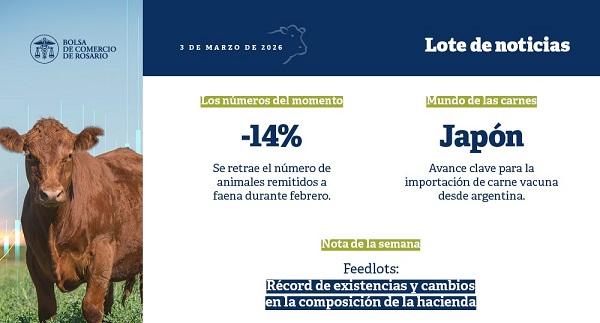 En febrero, de acuerdo con los últimos datos informados por el SENASA, la salida de terneros mostró un incremento importante, superando los 620 mil animales, aunque todavía por debajo de los 800 a 900 mil registrados habitualmente para ese mes. Sin embargo, el ingreso a corrales disminuyó tres puntos porcentuales. En términos absolutos, los feedlots incorporaron aproximadamente 140 mil terneros, un 30% menos que el promedio de los últimos tres años.