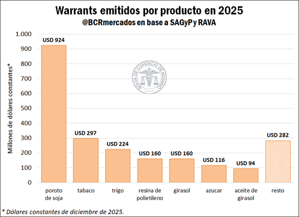 Finalmente, resulta interesante mencionar que, si bien los warrants han estado históricamente ligados a la actividad agroindustrial, las recientes reformas impulsaron la participación de productos que no tienen que ver con el sector. Entre ellos se destacan los warrants de resina de polietileno, emitidos en Tierra del Fuego, que se ubicaron en cuarto lugar en participación durante 2025 y en segundo lugar en 2024.