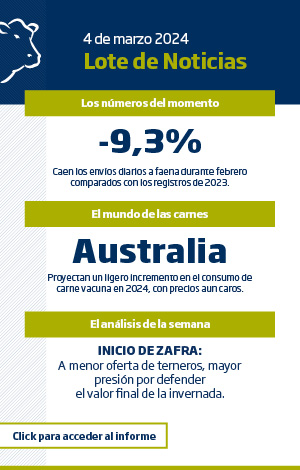 Por otra parte, la baja del precio del maíz de más de un 10% en dólares en lo que va del año, comienza a mostrar valores más atractivos para el encierre de esa invernada en origen, lo que podría reducir aún más la oferta temprana de terneros tanto para el invernador tradicional como para los feedlots.