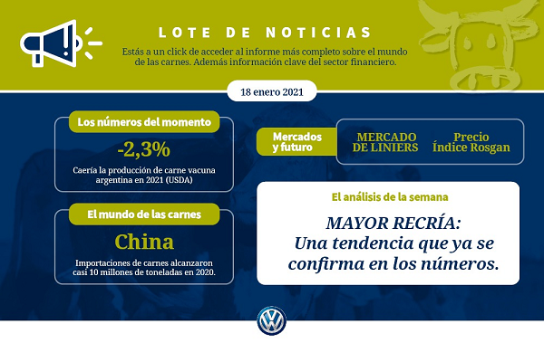 De acuerdo a los datos que se conocen a través de los movimientos de hacienda registrados en la Dirección Nacional de Sanidad Animal del Servicio Nacional de Sanidad y Calidad Agroalimentaria (SENASA), de enero a diciembre de 2020 un total de 9.880.126 terneros y terneras fueron trasladados con destino invernada y cría, lo que significa unos 311.090 terneros/as más que en 2019. Medido contra el stock inicial de terneros y terneras al 31 de diciembre de 2019 (14.964.614 cabezas), los traslados de 2020 involucran al 66% de ese stock comparado con un 64% equivalente en 2019