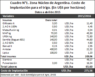 Para sembrar trigo en la campaña 2015/16, habría que invertir 1.500 millones de dólares