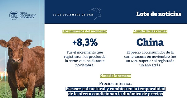 La semana pasada, el INDEC informó que la inflación minorista de noviembre fue del 2,5%, el registro más alto de los últimos seis meses. La división con mayor incidencia en la variación mensual fue Alimentos, impulsada fundamentalmente por el incremento en el precio de la carne, cuyos cortes relevados mostraron subas que, en algunos casos, resultaron hasta cuatro veces superiores al nivel general.