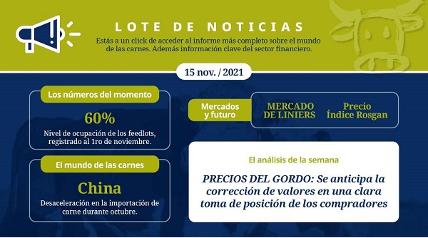 Según datos recientes publicados por la Cámara Argentina de Feedlot (CAF) a valores de compra de la invernada en torno a los $250 el kilo (180 kg), el punto de equilibrio del feedlot; es decir, el precio del gordo que requeriría para pagar todos los costos tanto de compra del ternero como de alimentación, sanidad, estructura, comercialización y financieros se ubica en $243 para un novillito liviano de 320 kg. Si bien los valores negociados recientemente comienzan a acercarse a estos niveles, este no es más que un precio de equilibrio, es decir, donde no se registran pérdidas, pero tampoco ganancias.