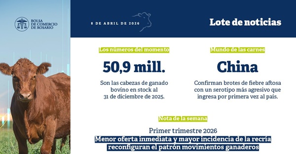 En términos acumulados, durante el primer trimestre de 2026 se registraron movimientos por 2.045.922 cabezas, lo que representa una merma del 16% respecto de las 2.433.585 cabezas trasladadas en igual período de 2025. En ausencia de información consolidada sobre el stock inicial del ciclo, esta dinámica podría interpretarse, preliminarmente, como un indicio de mayor retención de terneros por parte de los establecimientos de cría.