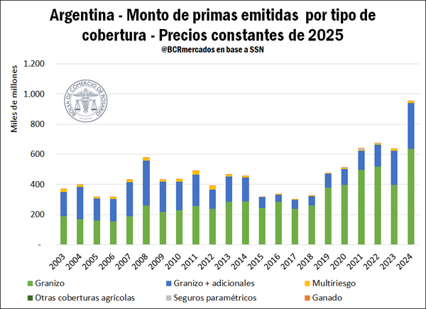 - El costo de cobertura por hectárea para los cultivos anuales promedió $32.000 en los últimos cinco años, una cifra que contrasta con los cultivos perennes, cuya prima por hectárea es 14 veces mayor.