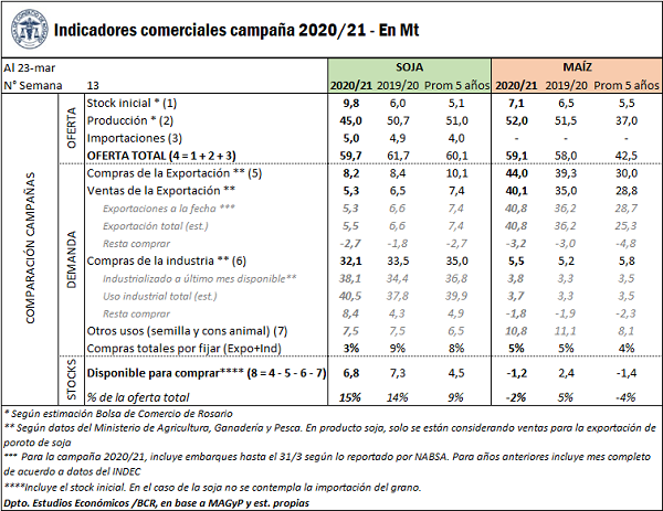 Indicadores comerciales de Soja, Maíz y Trigo – Campaña 2020/21.