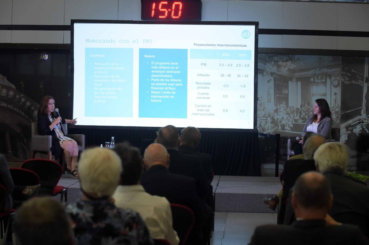 En el marco de la iniciativa “Encuentros en la Bolsa”, ante un auditorio de más de 60 personas, Marina Dal Poggetto expuso sobre “Argentina 2022: acuerdo contra las cuerdas en medio de la guerra en Ucrania”.