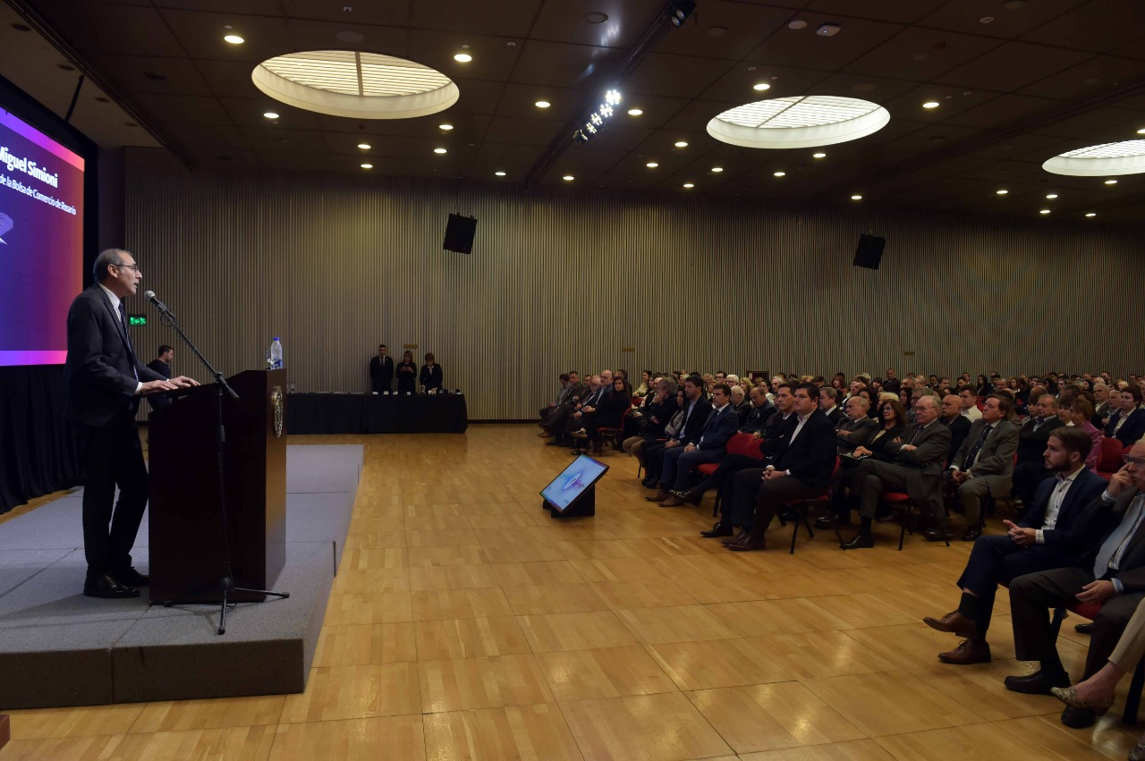 “Esta Bolsa de Comercio de Rosario, en el marco de su 138° Aniversario, hoy es motivo de reencuentro y de agradecimientos. Agradecimiento muy profundo de quien les habla y la Mesa Ejecutiva al engranaje principal que son los empleados de esta Bolsa, los funcionarios y todos los colaboradores. Sus proyectos e ideas me han enseñado, porque para presidir una institución como esta también hay que tener humildad y aprender. Se los agradezco profundamente”, expresó Miguel Simioni, presidente de la BCR, en sus palabras de apertura.