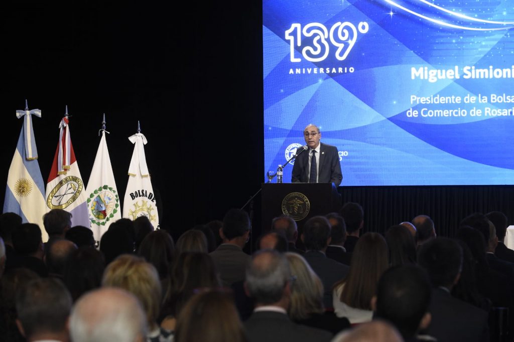 “Creemos fervientemente en una Bolsa innovadora, sostenible y de puertas abiertas. Y en línea con esto, hemos profundizado nuestros lazos con entidades industriales y empresariales, convencidos de que sentados en una misma mesa podemos generar los acuerdos que nos permitan construir una agenda común, para reclamar con mayor fuerza los recursos y fondos necesarios para impulsar el crecimiento y desarrollo del campo, el comercio y la industria en nuestras ciudades y regiones”, afirmó Simioni, que concluyó realizando un llamado a mantener viva la capacidad de soñar y de comprometerse con los valores que han guiado a la institución a lo largo de su historia.