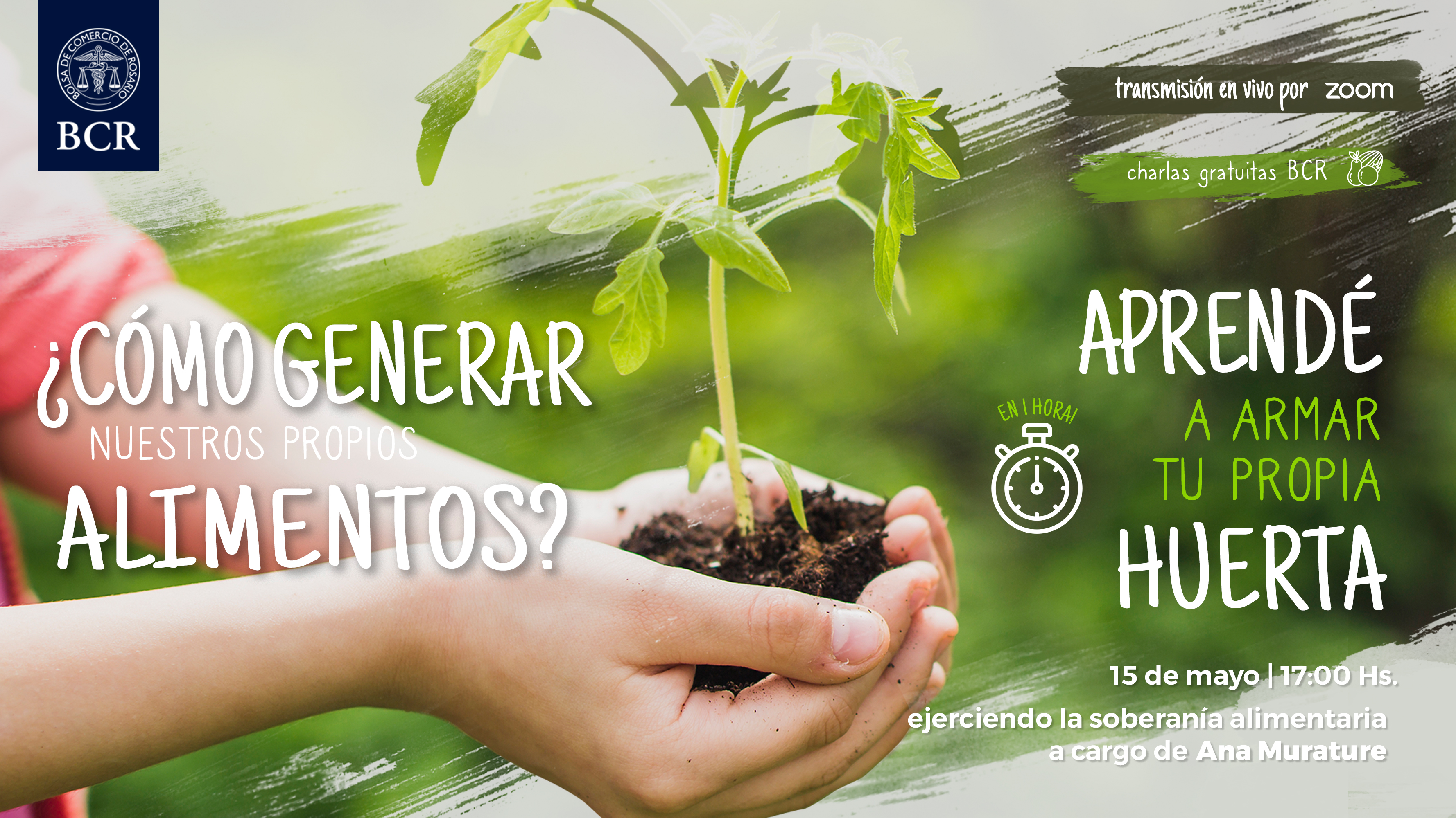 El ciclo de la BCR, es acompañado por la Fundación Bolsa de Comercio de Rosario junto al Instituto Nacional de Tecnología Agropecuaria (INTA), Municipalidad de Rosario, la Universidad Nacional de Rosario (UNR) y Nutrired. Con el objetivo de introducir los conceptos y las herramientas necesarias para armar una huerta en una hora, cómo participar del programa Pro Huerta y comprender a ésta práctica como una herramienta de transformación social.
