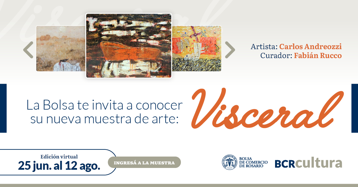 La Bolsa de Comercio de Rosario presenta “Visceral”, la segunda muestra del Ciclo de Arte 2021. En esa oportunidad, la exposición será en memoria de la obra de Carlos Andreozzi, artista rosarino quien falleció recientemente. Estará disponible de forma virtual.