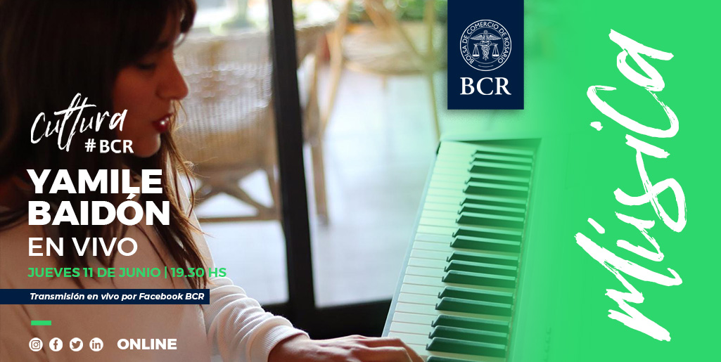 La Bolsa de Comercio de Rosario te invita a compartir el espectáculo en vivo de la cantante, pianista y compositora rosarina Yamile Baidón, con un repertorio que incluirá canciones propias y versiones en piano.