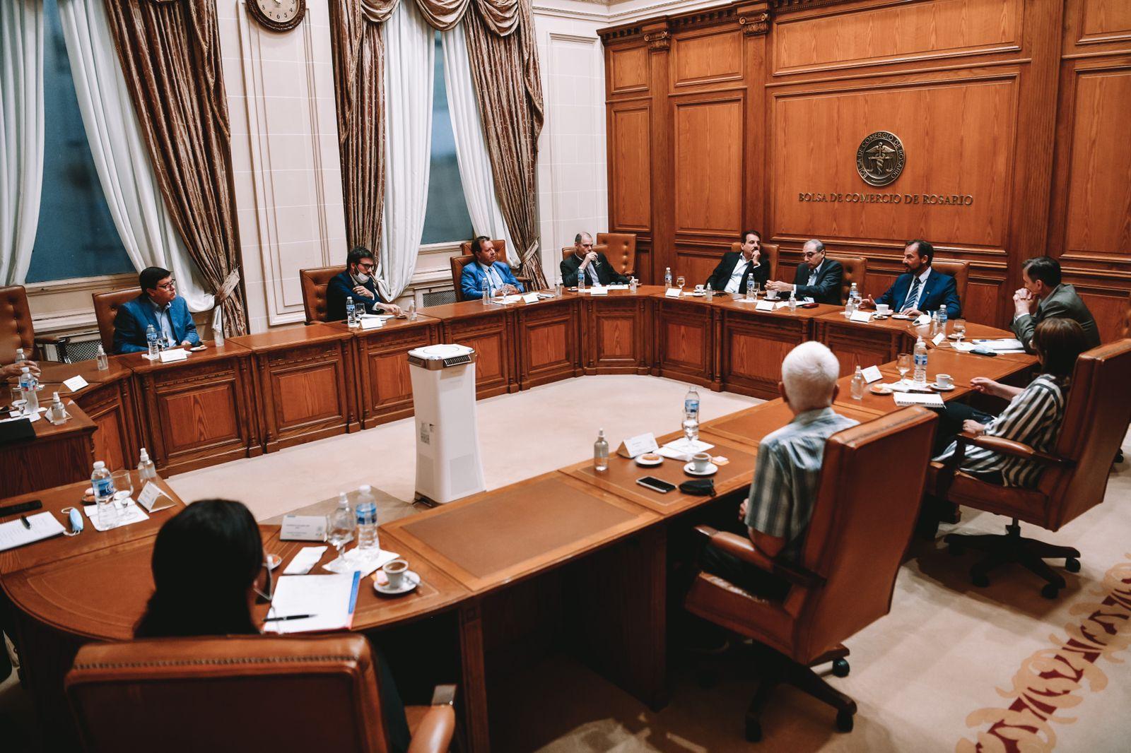 La reunión desarrollada en la BCR, contó con la participación de la Cámara de Puertos Privados Comerciales (CCPC), la Cámara de Actividades Portuarias y Marítimas (CAPyM) y miembros de la Comisión de Transporte de la Bolsa.